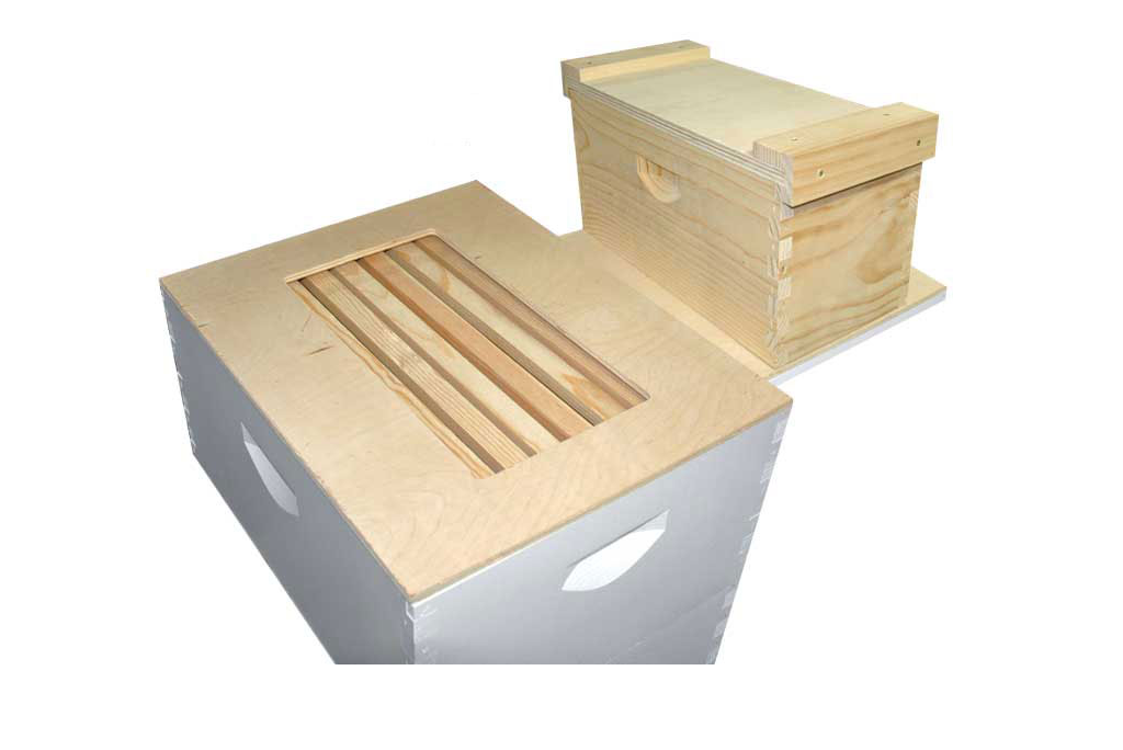 Uniting nucs and colonies made simple and straight-forward. After removing the cover and inner cover, place the Nuc Introduction Board on top of the hive, followed by a piece of newspaper and the nuc box. Easy as that!