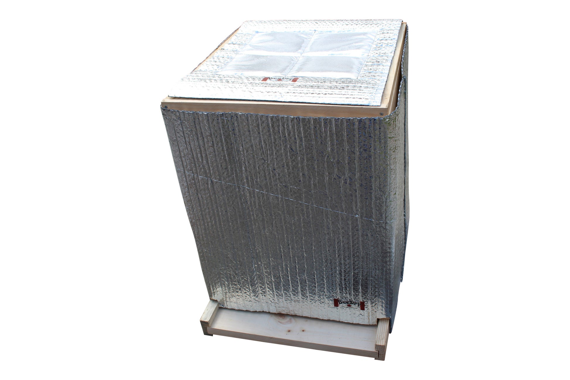 BeeDry is a radiant foil insulation hive wrap. BeeDry helps keep air at a constant temperature inside the hive by reflecting (97% of) the radiant heat of bees back to the cluster, at the same time reflecting (97%) outside temperatures away from the hive. Reusable each season. (Top pillow sold seperately)